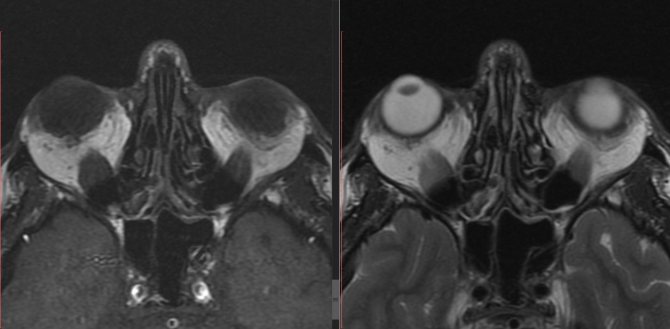 Для уточнения степени деструктивных процессов в периорбитальных тканях применяют МРТ