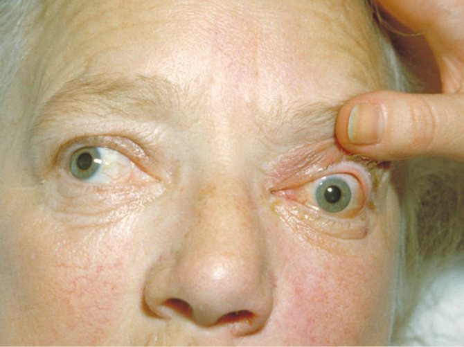 Патологию следует отличать от других заболеваний — новообразований (особенно при поражении офтальмопатией одного глаза), псевдоэкзофтальма при высокой степени миопии, нейропатии зрительного нерва, возникшей по другим причинам, флегмоны глазницы, миастении.