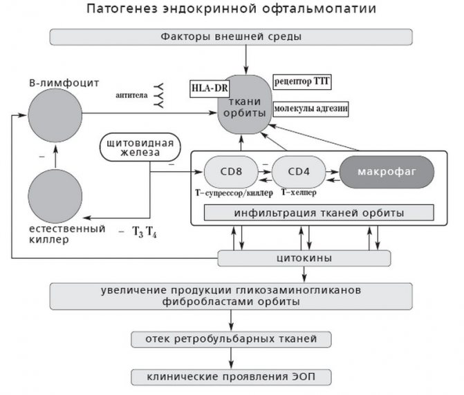 Основная причина возникновения экзофтальма – рост объема тканей орбиты в ретробульбарном пространстве в результате нейродистрофических, воспалительных, опухолевых либо травматических процессов. Эти процессы могут носить общий (экстраорбитальный) и локальный (интраорбитальный) характер.