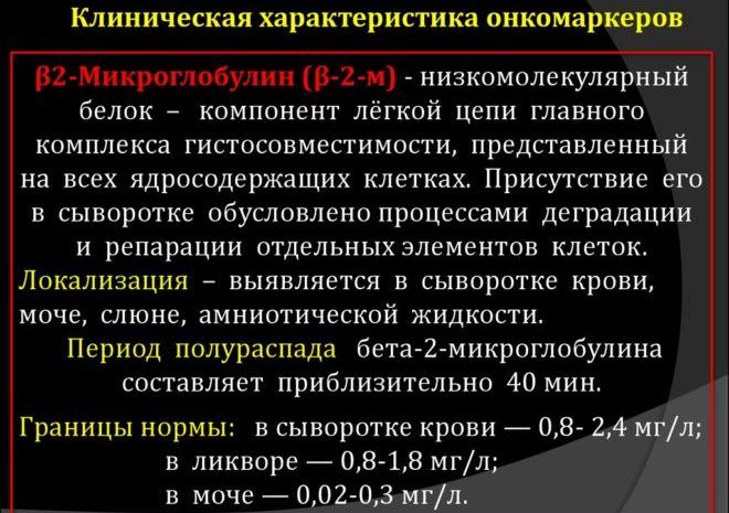 На развитие лимфомы или лимфоцитарной лейкемии указывает повышенное содержание онкомаркера Б-2-МГ. Для получения более полной информации и отслеживания динамики изменения показателей, анализ следует сдавать несколько раз, через определенные временные промежутки. Также, одной из причин необходимости проведения нескольких анализов является то, что наличие онкомаркеров может быть особенностью организма.