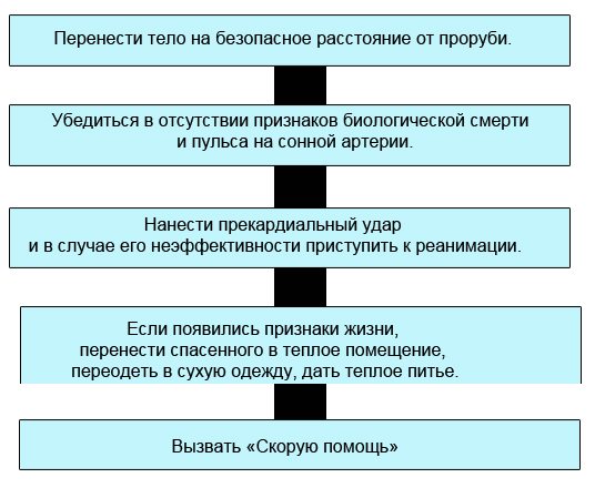 СХЕМА ОКАЗАНИЯ ПОМОЩИ ПРИ БЛЕДНОМ УТОПЛЕНИИ(ПОСЛЕ ИЗВЛЕЧЕНИЯ ИЗ ПРОРУБИ)
