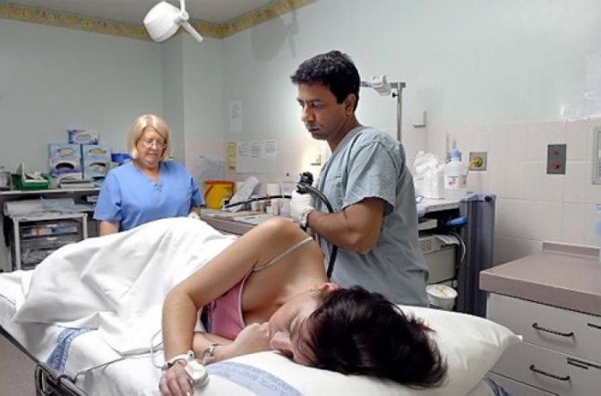 После того как введено обезболивающее, медсестра, не спеша и аккуратно вводит зонд в задний просвет кишечника. Доктор на мониторе осматривает стенки и внутреннее содержание кишки, а также как проходит прибор через просвет.
