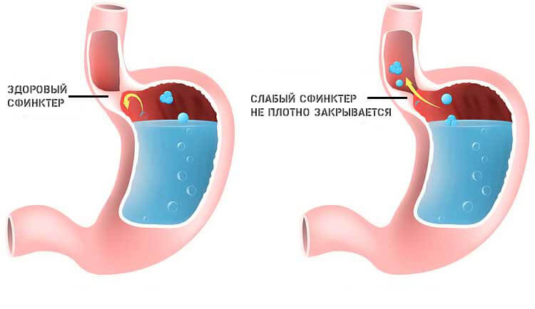 Представляет собой нарушение работы пищевода и сфинктера, когда еда, желудочный сок и содержимое полого органа забрасывается обратно по пищеварительному тракту (это и есть рефлюкс). Часто проявляется горечью во рту, отрыжкой воздухом, сильным жжением, о ощущением инородного тела в области горла.